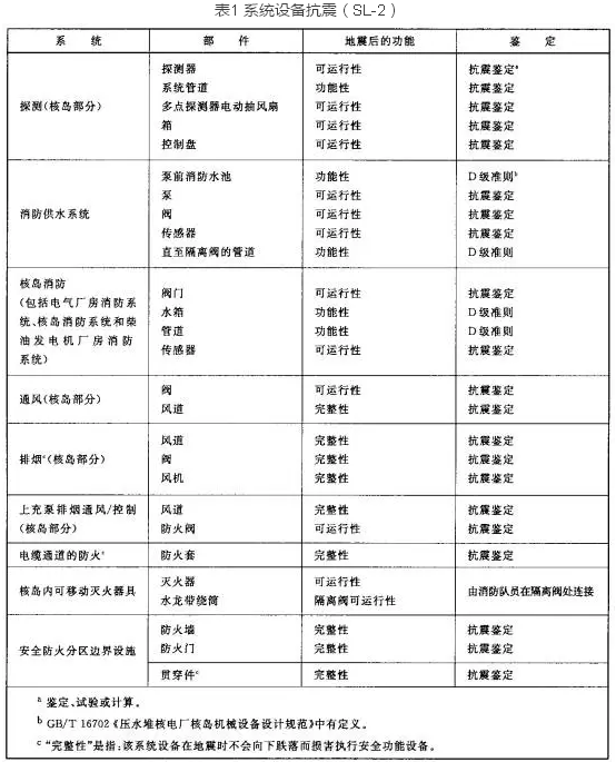 核電廠的火災(zāi)自動報警系統(tǒng)需滿足相關(guān)質(zhì)保等級的要求并且系統(tǒng)在運(yùn)行階段要接受定期試驗(yàn)檢查,另外,所有設(shè)備應(yīng)經(jīng)過抗震試驗(yàn)鑒定并能承受極限安全地震(SL-2)荷載,且保證其可運(yùn)行性(見下表1)。